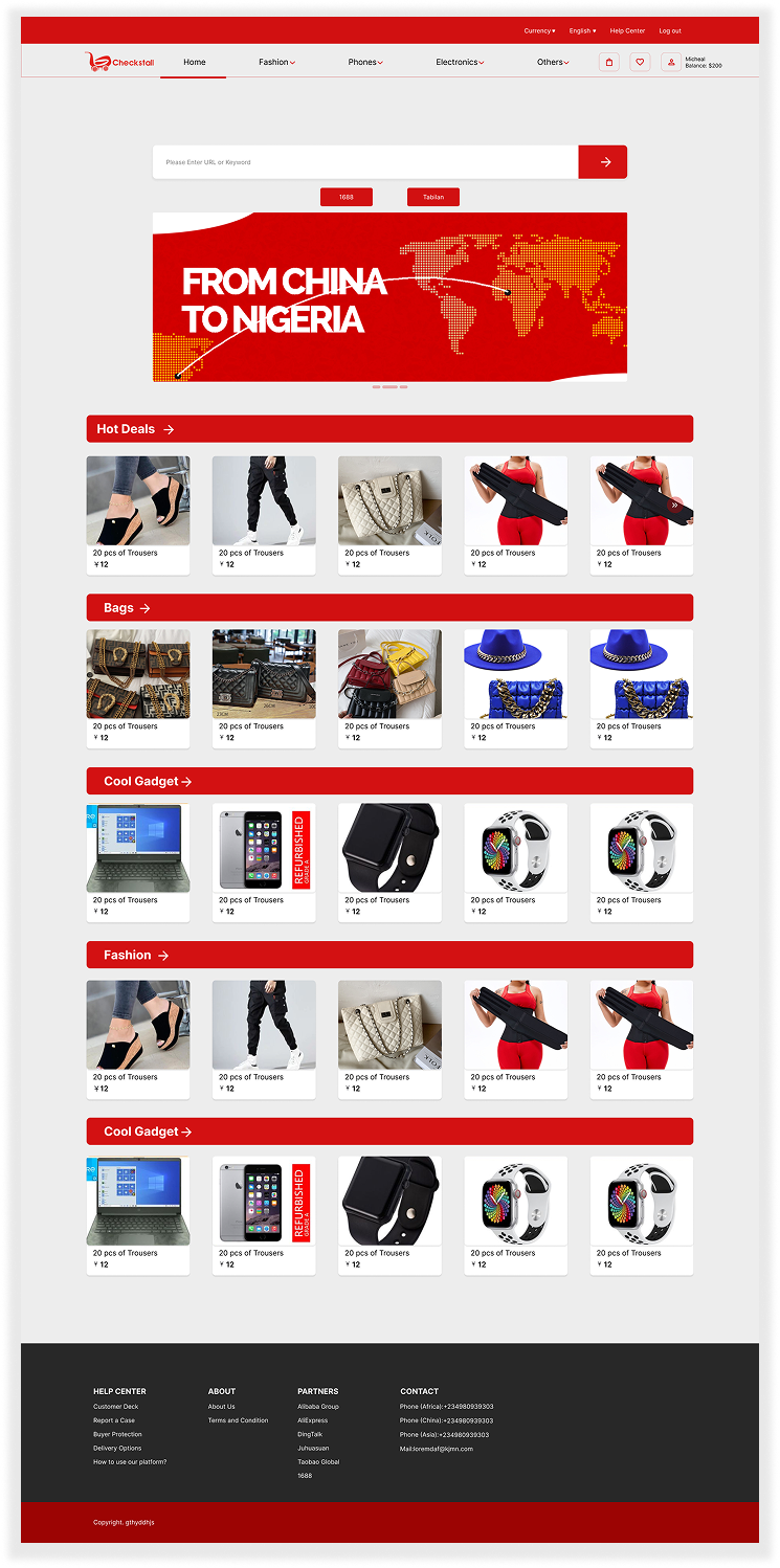 Checkstall is a powerful e-commerce platform that enables users to make bulk orders of goods from China to Nigeria. With its integration with APIs from 1688.com and Banggood — two of the largest platforms used by Chinese stores — Checkstall offers a seamless and convenient way to purchase products from the Asian market.